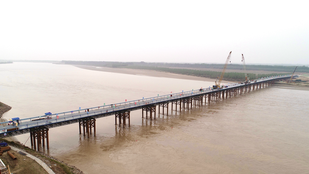 鄭濟鐵路(山東段)長(cháng)清跨黃河特大橋施工棧橋順利